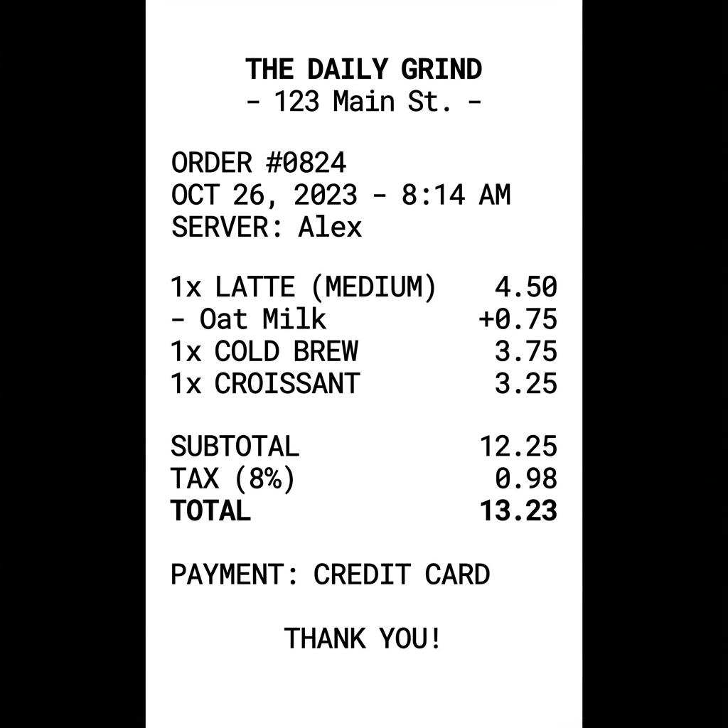 AI Vision sees: "This looks like a receipt. There is a number at the bottom right formatted as currency ($100.00). Given the context of the document, this is highly likely to be the Total Amount."